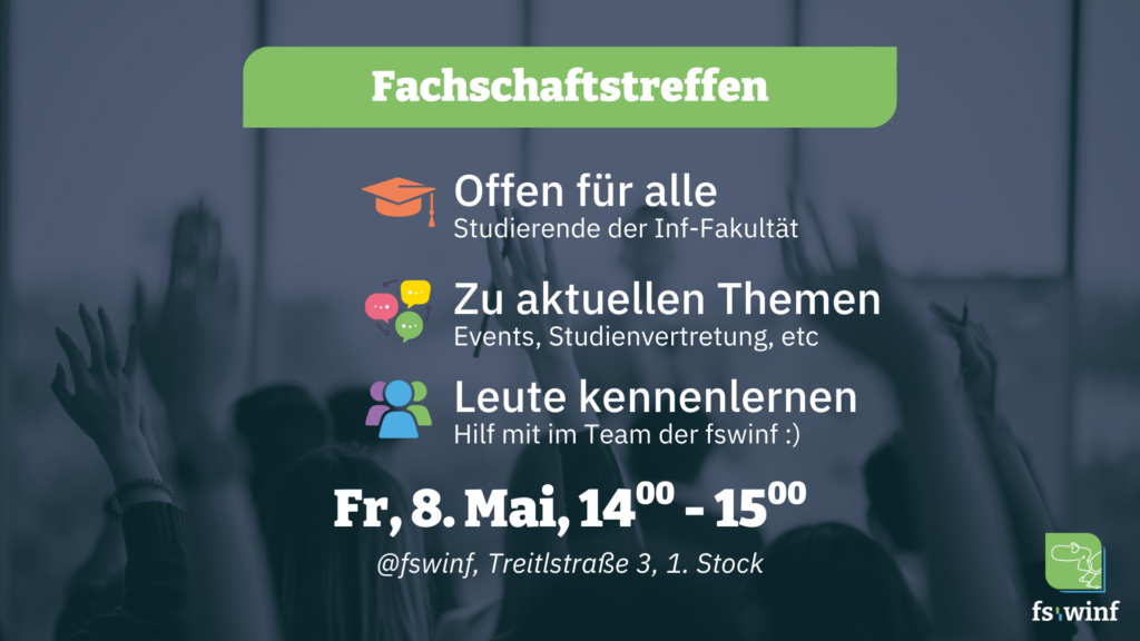 Komm vorbei zu unserem Fachschaftstreffen im Sommersemester 2026. Wir besprechen aktuelle Themen wie Events, Kommissionen, etc.